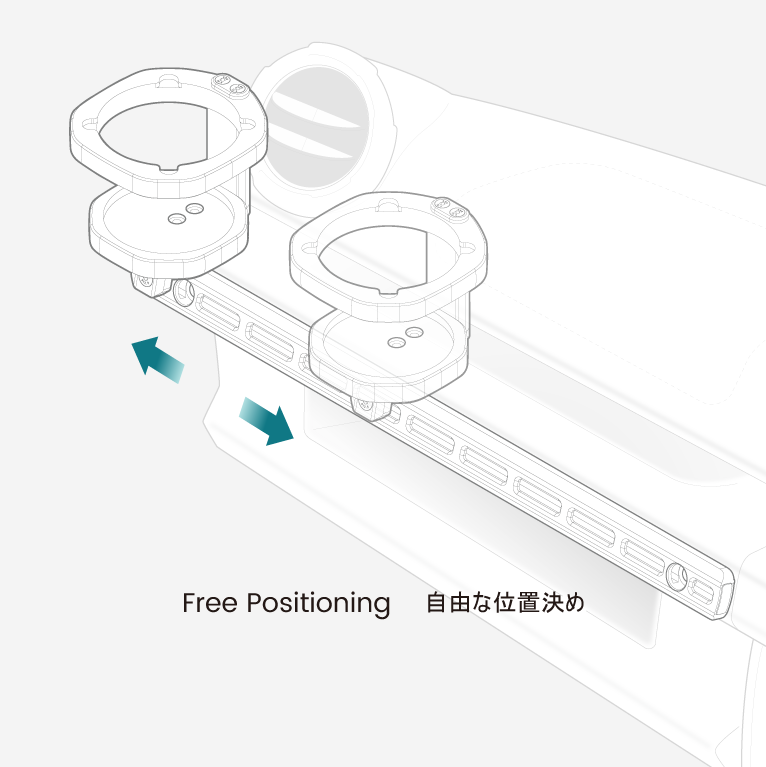 ロスレスインストール。カップホルダーを車両の内部空洞または M-LOK レールに挿入するだけで準備完了です。